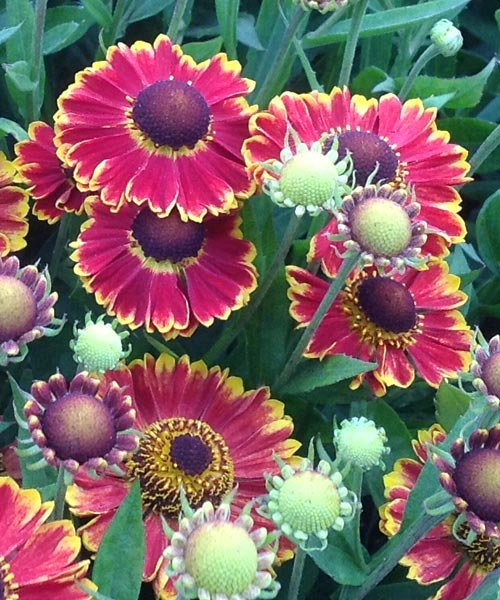 Образует пышный куст с многочисленными стеблями высотой от 60 до 100 см. Цветки у гелениума махровые или полумахровые. Листья светло-зеленые. Цветет с середины июля — начала августа до первых заморозков.