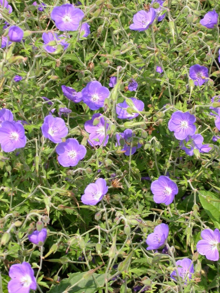 Листья до 40см высотой, хорошо держат форму куста, цветоносы до 80см, раскидистые, легко поникают, посаженная на подпорную стенку, эта герань свешивается, создавая зелено-синий водопад. Предпочитает место с неярким солнцем, кружевной полутенью. Цветы сиренево-синие, почти синие, с белым глазком, до 3см в диаметре, цветение обильное, но из-за размашистых цветоносов кажется недостаточно густым.