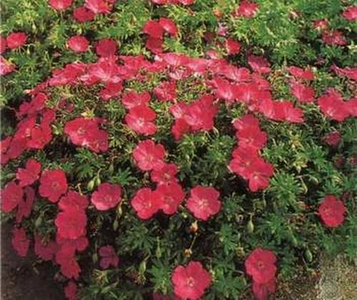 Многолетнее растение, высотой до 20-30 см. Листья изящные, очень ажурные, зеленные, слегка опушенные. С середины июня по август цветет кармино-красными цветками, до 4см в диаметре.