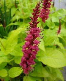Высота растения 50-70 см. Цветение июль - октябрь. Образует густой кустарник из широких копьевидных листьев золотисто-зеленого цвета. Стройные вертикальные шипы темно-красных цветков появляются в середине лета и держатся до заморозков. Лучше растёт в средней влажности, хорошо дренированной почве в частичной тени.