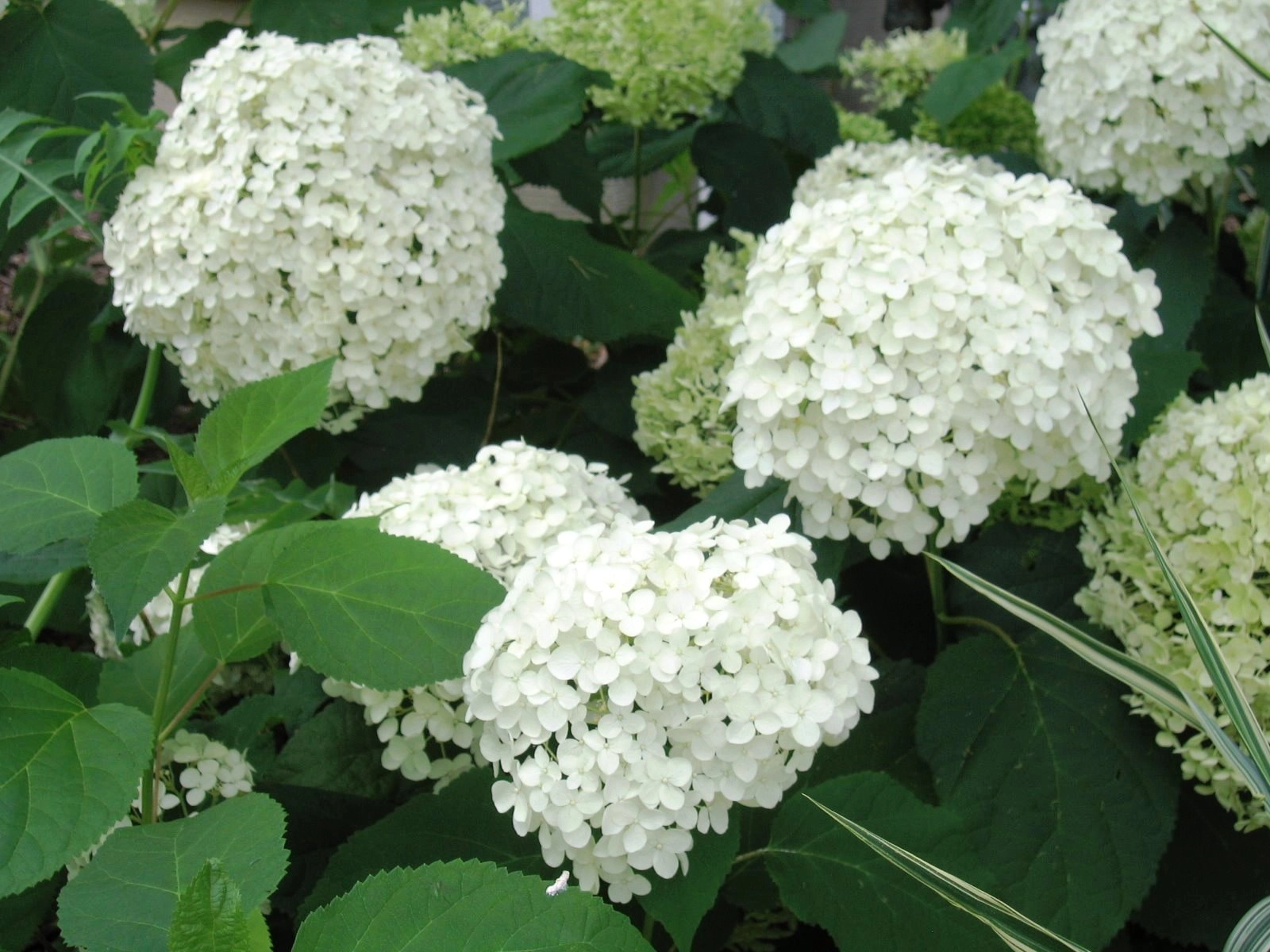 Гортензия древовидная Хиллс оф Сноу полностью оправдывает свое название. Ее лучшим украшением являются цветущие шары, состоящие из нескольких десятков соцветий. Каждый маленький цветок – идеального белого цвета, а потому и цветочные шапки выглядят очень заметно и ярко на фоне темно-зеленых листьев. Этот окрас может измениться под воздействием внешних условий. Высота кустарника – около 1,2 метра. Гортензия любит место для, что бы было солнце или полутень. Выдерживает морозы до -40 градусов. Почва должна быть влажная и плодородная