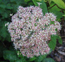 Бутоны розовые. Цветки от розовато-белых до белых. Соцветия плоские, слегка куполообразные, диаметром 10 см. Цветёт в июне-августе.