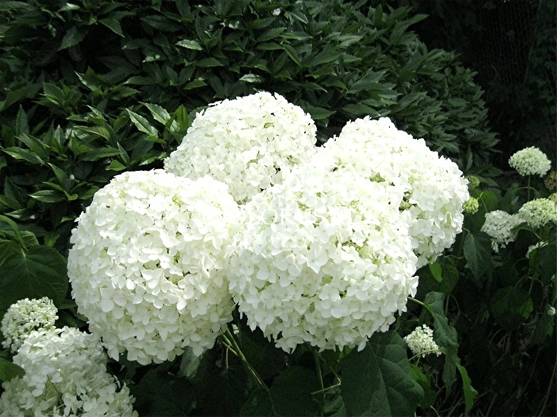 Куст высотой 120-150 см., с жесткими прямостоячими побегами. Соцветия шаровидные, очень крупные. В начале цветки лимонно-зелёные, затем белые, в конце цветения зелёные. Цветение на побегах текущего года, длительное, с июня до заморозков. Имеет хорошую устойчивость к порывам ветра, хорошая морозостойкость. Это влаголюбивое растение, которое лучше сажать на хорошо освещенных участках. Идеально, когда утром оно будет на солнце, а в дневное время – в полутени.