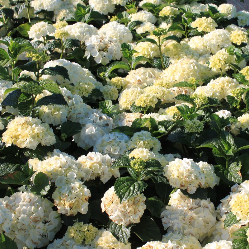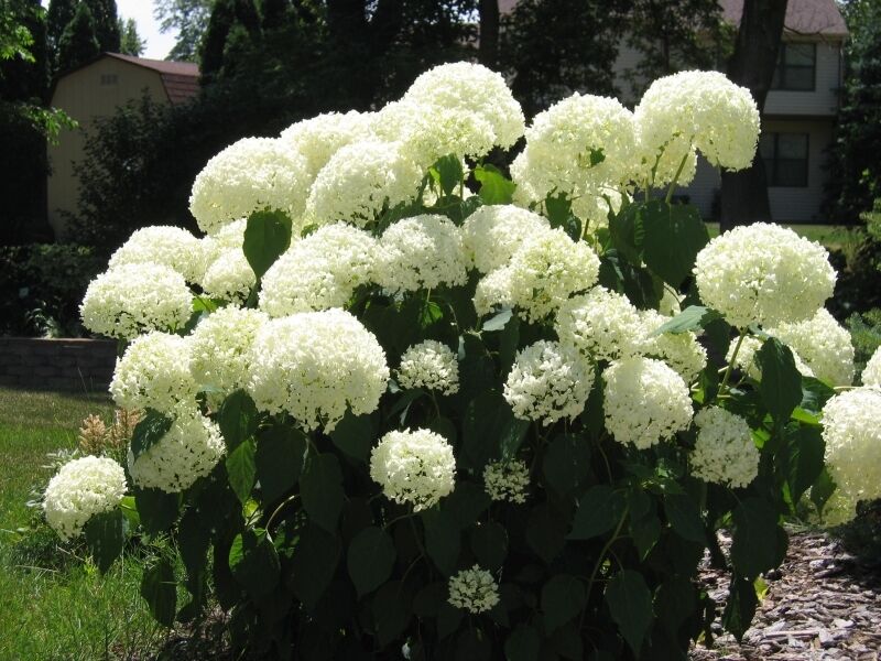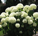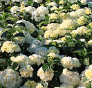 Соцветия крупные, до 30 см в диаметре, цветёт на побегах прошлого и текущего года, цветки белые, эффектные. Время цветения июль-сентябрь.