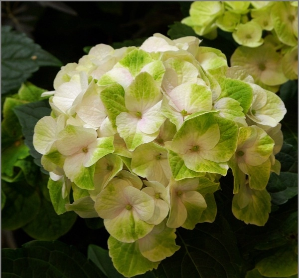 Куст высотой 100-120 см, шириной 100 см. Листья тёмно-зелёные. Окраска лепестков меняется по мере цветения естественным образом. Огромные элегантные белые с зеленой каймой цветки вначале розовеют, а затем становятся красно-зелеными. Цветки собраны в большие соцветия диаметром 20 см. Предпочитает кислые почвы. Место солнечное или полутенистое.Требует укрытия на зиму, цветет на побегах прошлого года