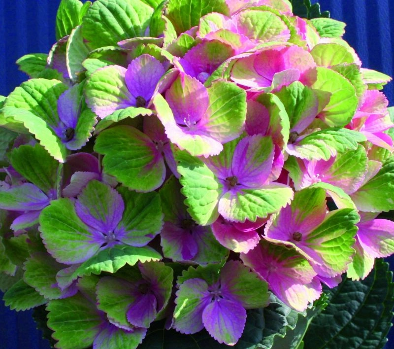 Гортензия крупнолистовая - красивый декоративный кустарник с прямостоячими побегами. Листья простые, яйцевидные, ярко-зеленые. Цветки крупные, шаровидные, до 20—25 см в диаметре, образуются на концах побегов. ... Мэджикал Джейд - цветки редкой окраски, вначале белые с зелёной каймой, затем белая часть цветка зеленеет, а зелёная кайма краснеет. Лепестки с резным краем. Соцветия крупные, округлые.