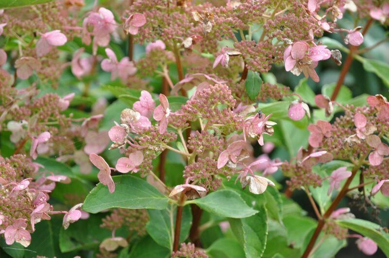| Цветок | Соцветие- метелка конусовидной формы с преобладанием фертильных цветков, которые при отцветании становятся винно-красными. Стерильных цветков немного, они крупные и расположены вдоль конуса, сначала кремовые, со временем становятся темно-розовые. |