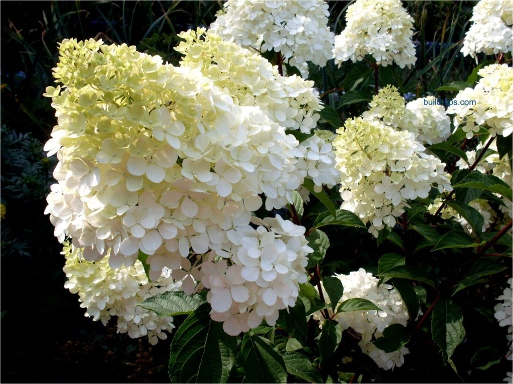 Кустарник высотой до 2 м, с прямостоячими побегами. Листья тёмно-зелёные. Цветет с июля по сентябрь. Цветки преимущественно стерильные, белые, к осени слегка розовеют, собраны в крупные, конусовидные соцветия.