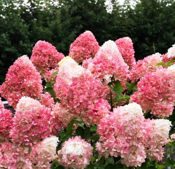 Гортензия метельчатая Пинк энд Роуз - имеет округлую форму куста, высота около 130 см, диаметр 120 см. Побеги очень крепкие, соцветия не поникают.