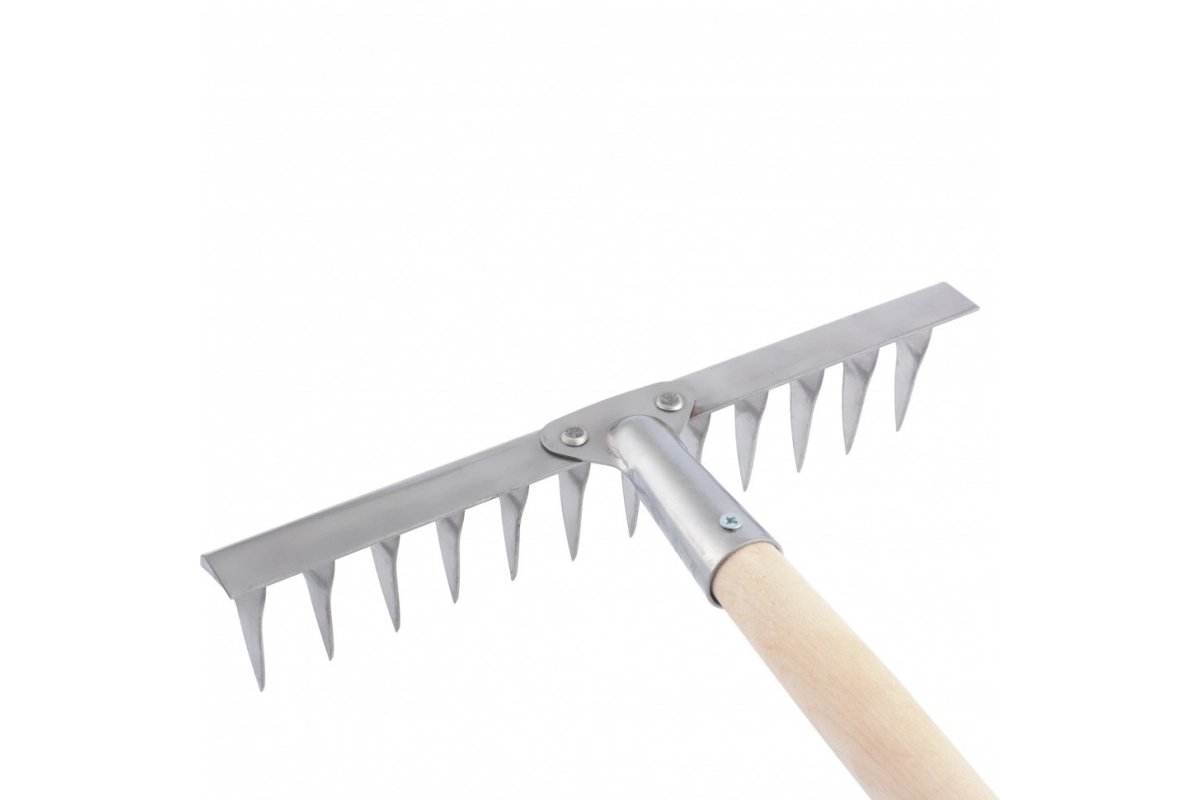 Садовые грабли с черенком 12 витых зубцов используются для выравнивания грунта, а также очистки садовых участков от различного мусора, скошенной травы и опавших листьев.