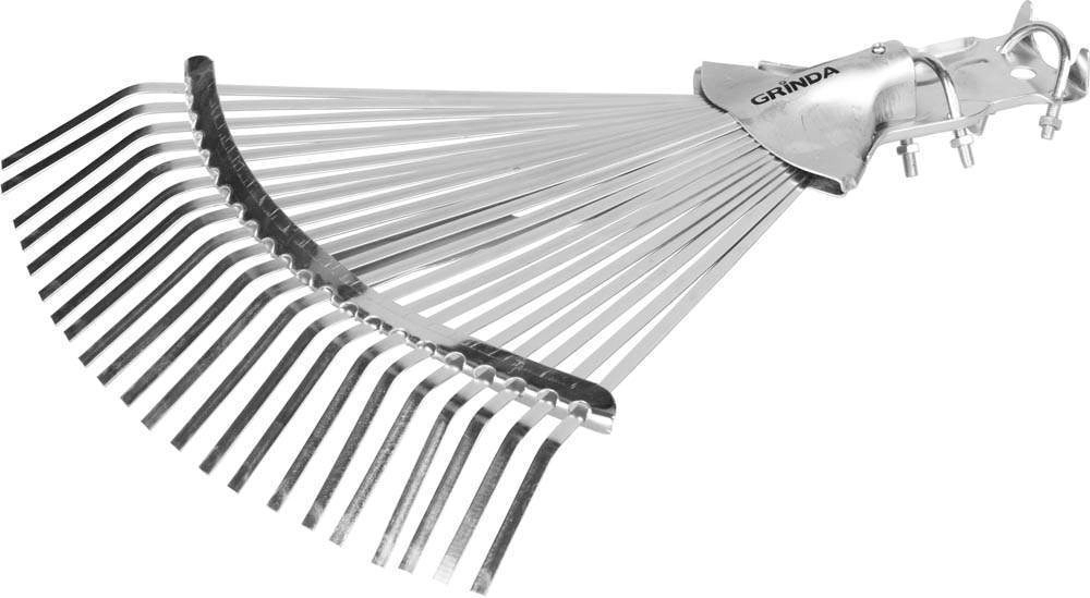 Применяется для сбора опавших листьев и скошенной травы на садово-огородных участках. Рабочая часть изготовлена из стали высочайшего качества. Плоские зубцы изготовлены из углеродистой стали и имеют защитное покрытие от коррозии. Регулируемая тулейка позволяет применять черенок диаметром от 25 мм до 30 мм. Механизм фиксации зубцов дополнительно упрочняет конструкцию и позволяет регулировать ширину рабочей части инструмента от 30 до 44 см.
