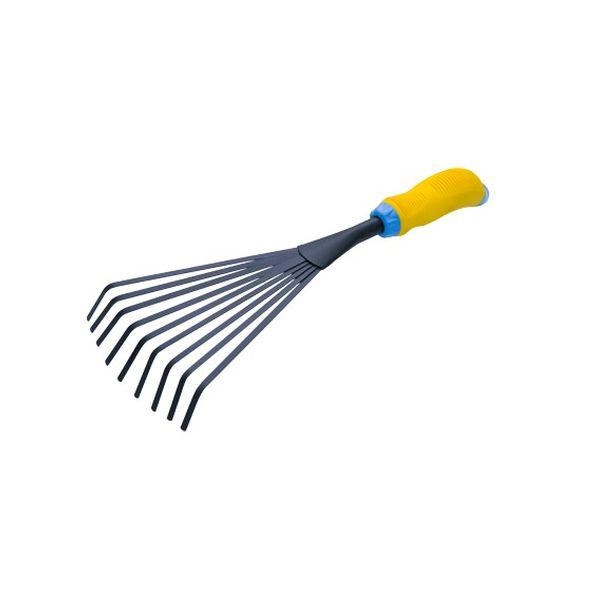 Веерные мини грабли, 9 зубцов Brigadier 81013 используется для сбора мусора и листьев с небольших участков почвы. Тонкие зубцы аккуратно сгребают мусор, не повреждая садовые растения. Эргономичная форма рукоятки и наличие рифления гарантируют удобный и надежный хват рукой.
