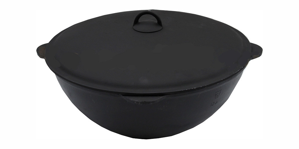 Чугунный казан с крышкой Concretika, предназначен для приготовления пищи на костре или углях.