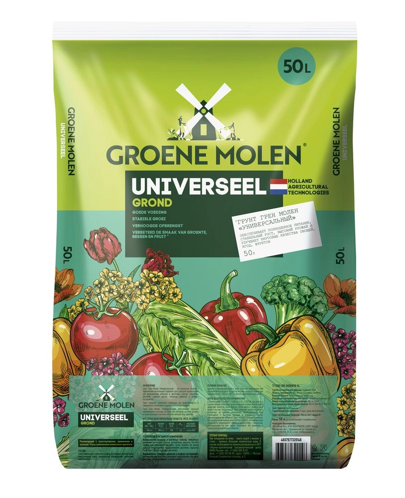 Грунт GROENE MOLEN «Универсальный» обеспечивает хорошую приживаемость рассады, быстрый рост растений, высокие урожаи, а также улучшает вкусовые качества овощей, ягод, фруктов.