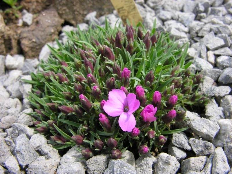 Многолетние травянистые растения, которые формируют густые компактные ковровые дерновины 3-5 см высоты. Стебли прямостоячие, тонкие, очень короткие, листья серо-зеленые. Цветки обычно одиночные, чисто-розовые, иногда белые. Цветет в июле-августе. Морозостоек