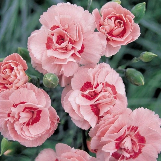 Многолеттнее растение 25-30 см высотой. Цветки махровые, нежно-розовые, с карминовым центром, с приятным ароматом. Цветение обильное и продолжительное, с июня. Светолюбива.