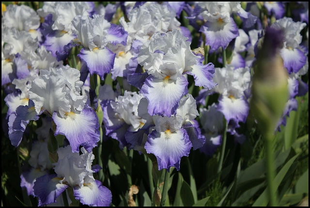Освежающий вид в насыщенных бело-голубых тонах. Стандарты чистого прозрачно-белого цвета, фолы широкие голубые, светлеющие по направлению к светло-жёлтой бородке. Очень обильно цветущий. Аромат: нежный сладкий цветочный.