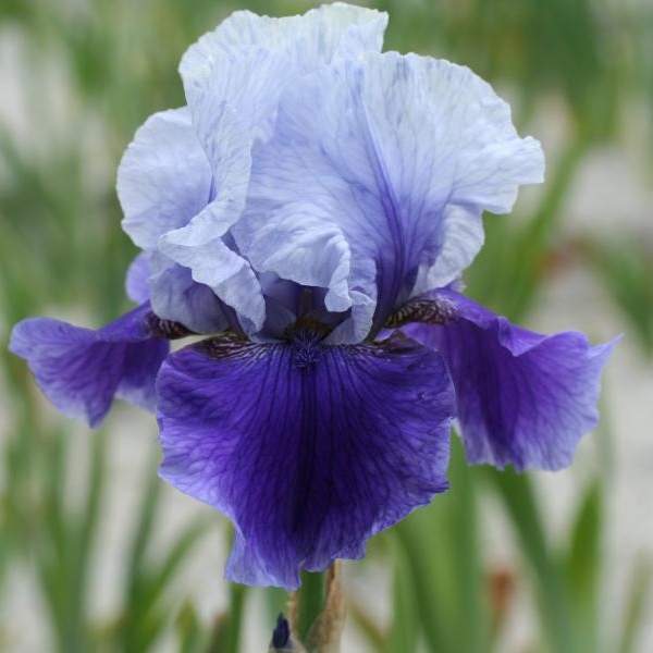 Цветок оригинальной формы, на прочном разветвленном цветоносе. Удивительная окраска цветка: верх - голубой, низ - фиолетовый. На наружных долях околоцветника бородка из густых волосков.