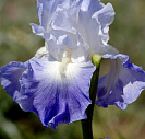 Стандарты (верхние лепестки) белые с легкой вуалью голубого оттенка по самому краю лепестка. Фолы (нижние лепестки) имеют у основания отчетливо белую серединку, переходящую в фиолетово-голубую широкую окантовку. Бородка бело-желто-кремового цвета.