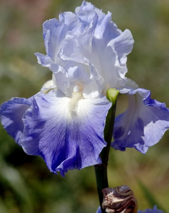 | Цветок | Стандарты (верхние лепестки) белые с легкой вуалью голубого оттенка по самому краю лепестка. Фолы (нижние лепестки) имеют у основания отчетливо белую серединку, переходящую в фиолетово-голубую широкую окантовку. Бородка бело-желто-кремового цвета. |