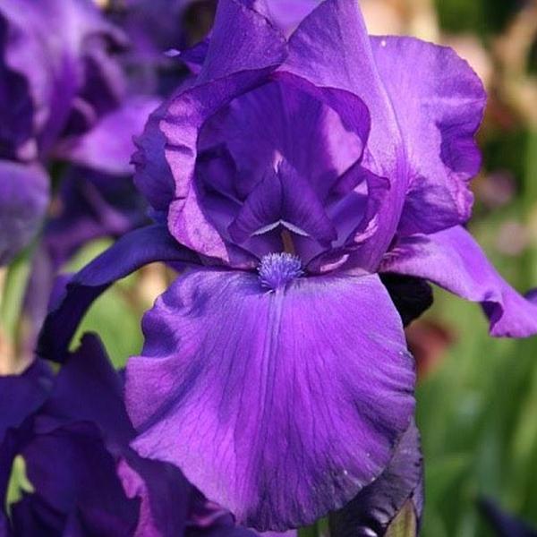 Цветки фиолетовые, глянцевые, крупные (15 см) и ароматные. Ворсяная синяя бородка компактно поселилась у основания нижнего ряда лепестков.