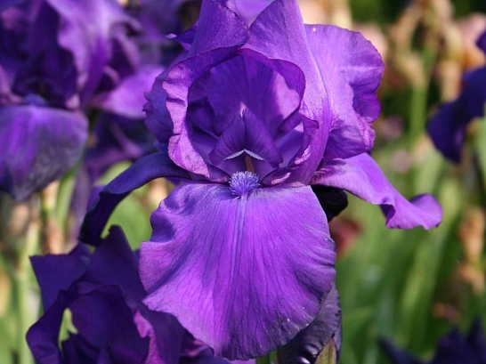 | Цветок | Цветки фиолетовые, глянцевые, крупные (15 см) и ароматные. Ворсяная синяя бородка компактно поселилась у основания нижнего ряда лепестков. |