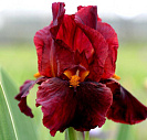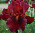 Шикарные крупные цветы бордово-красного оттенка с медно-желтой бородкой в основании нижних гофрированных лепестков. Диаметр соцветия 12-15 см.