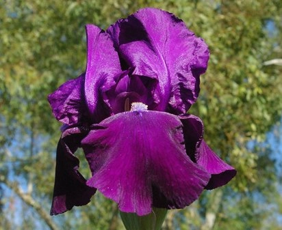| Цветок | Цветы фиолетовые с белыми прожилками у центра, бородка жёлтая. Лепестки слегка гофрированные. |