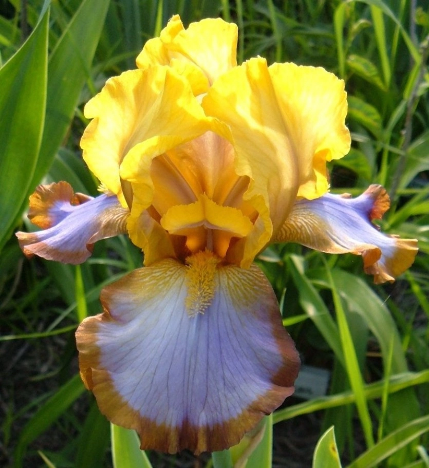 Высота растения 60- 80 см. Аромат ириса тонкий, сладкий. Этот сорт ириса не только высокодекоративен, но и устойчив к заморозкам и засухе, практически не страдает от насекомых-вредителей и болезней. Время цветения приходится с мая по июнь. Ирис германский Браун Лассо - имеет задорную окраску и необыкновенные оттенки бархатистых лепестков. Верхушка цветка канареечно-жёлтая, низ светло-сиреневый с тёмно-жёлтой каймой, лепестки слегка закрученные. Растение неприхотливое, главное – выращивать его на хорошо дренированной почве и не переувлажнять почву при поливе. Зимостойкость — высокая.