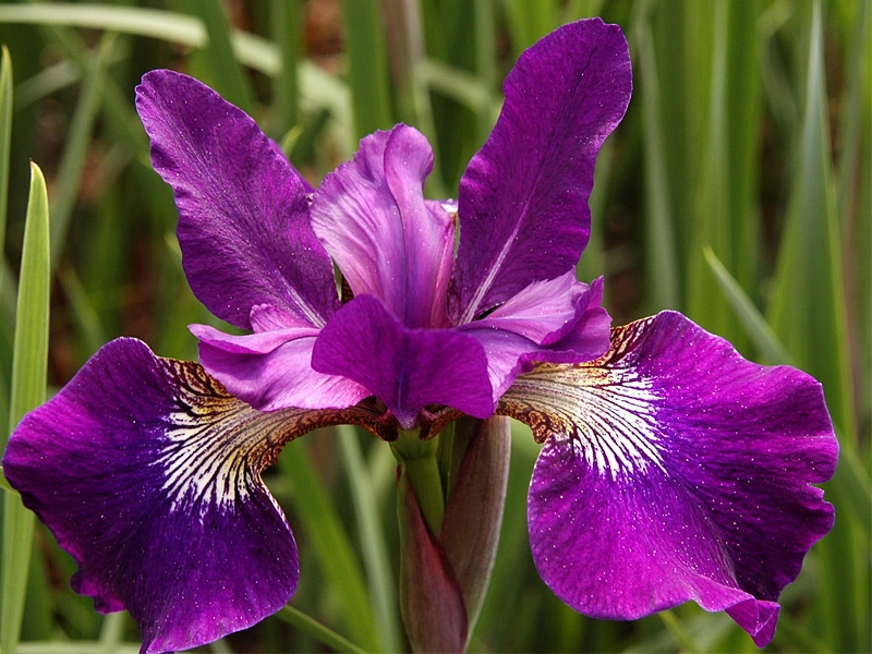 Цветки розовато-сиреневые со светлым пятном и жилкованием. Цветёт в конце мая - июне.