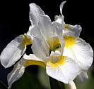 Цветет в июле. Цветки белые с желтым основанием. Бородка отсутствует, длина цветоносов превышает высоту куста.