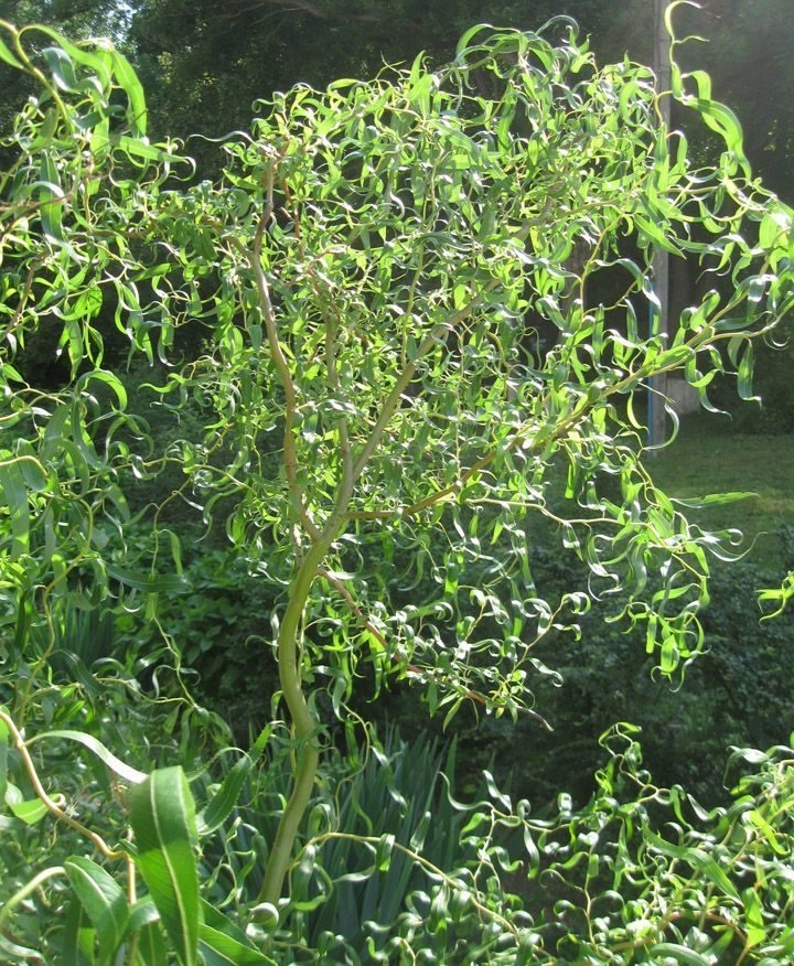 Извилистые побеги имеют зеленовато-желтый оттенок, с возрастом они темнеют и окрашиваются в коричневый тон. Нижний край листа имеет сизо-серый оттенок, а верхний окрашен в сочный зеленый, закручиваются по спирали.
