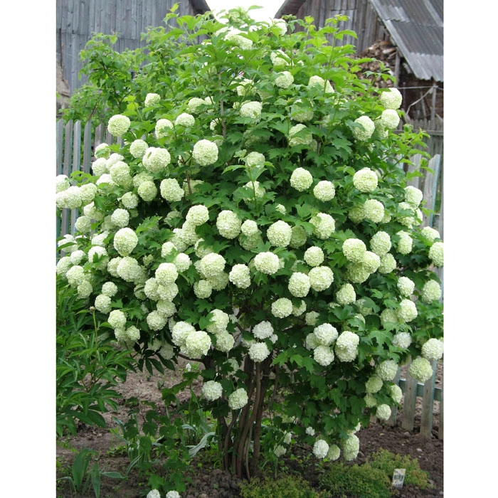 Куст до 3 м. Соцветия белые шаровидные. Цветет обильно в июне - начале июля (более 30 дней). Саженцы калины Бульденеж очень неприхотливы и супер-зимостойки. Необходимо выбрать участок с питательной почвой и лёгкой полутенью - на постоянном солнце листочки могут подгорать, а в тени калине может не хватать сил для продолжительного цветения.