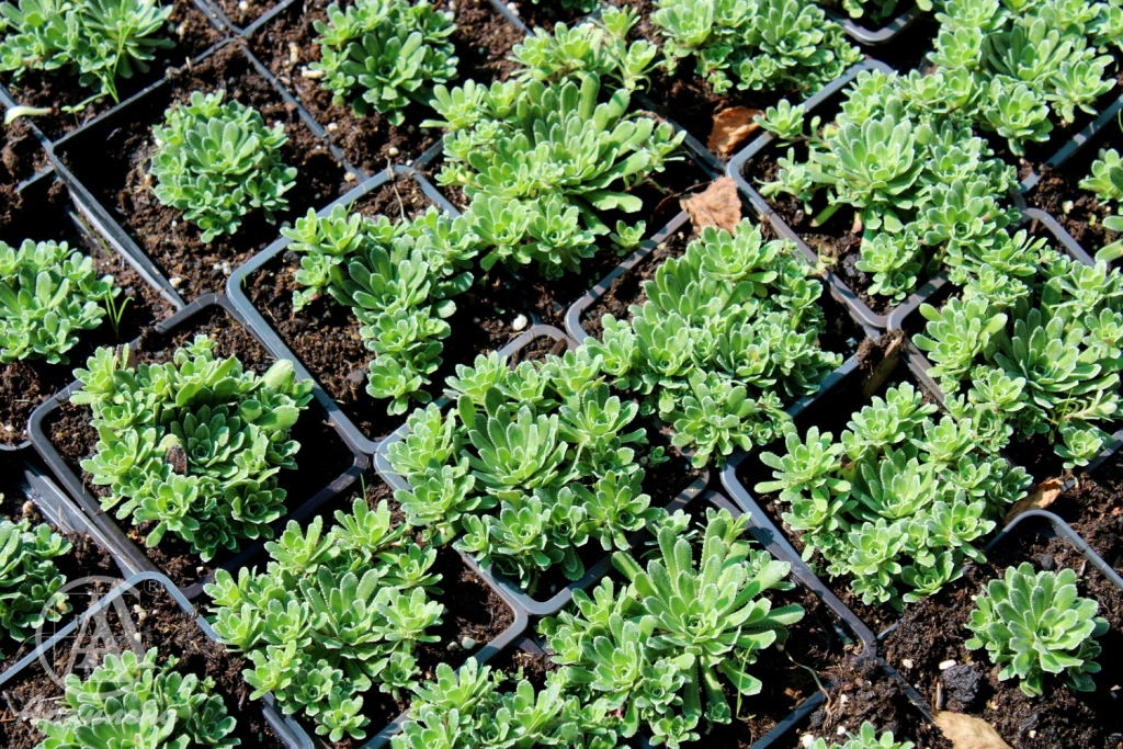 Высотой 15 см. Листья зеленые с серебристым окаймлением, кожистые, линейные, 3-6 см в длину, собраны в прикорневую розетку. Цветы белые, на цветоносах высотой 25 см, цветет в июне.