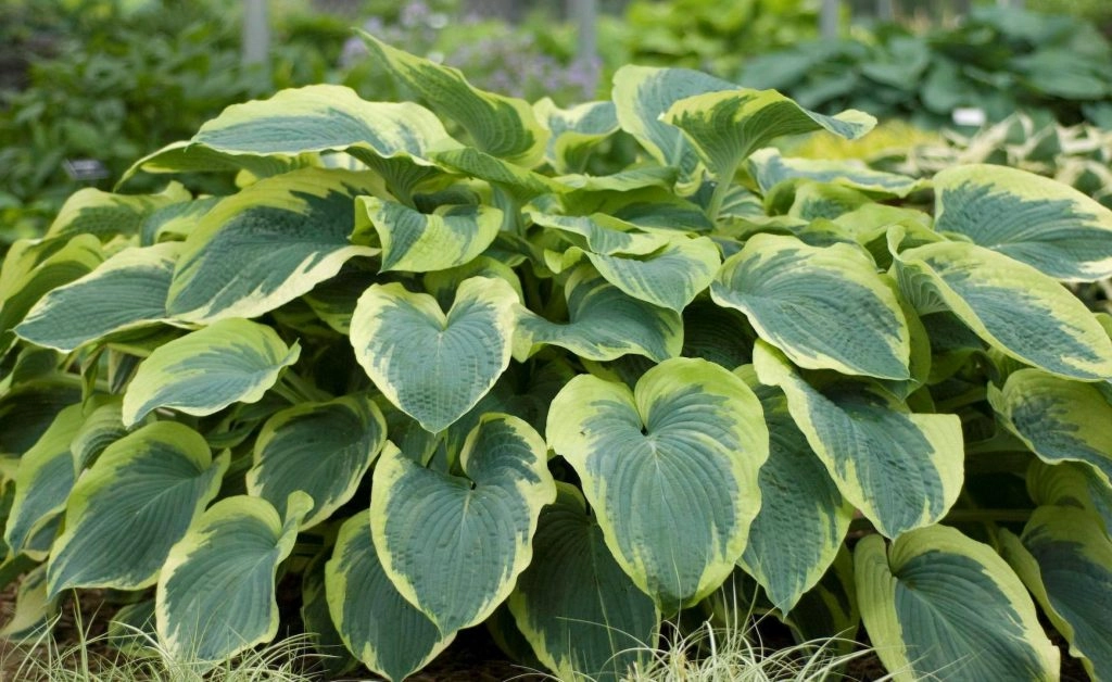 Листва: Листья толстые, овальные сильно жатые и гофрированные. Сине-зеленый центр листа окаймлен желтовато-белой каймой.
