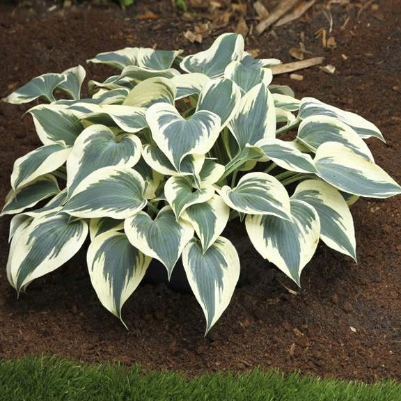 Высота куста до 45 см, в ширину может разрастаться до 120 см. Средний темп роста. Листья сизые с кремовой каймой. Высаживать лучше в полутени, почвы любит влажные, хорошо дренированные. Высокая зимостойкость.