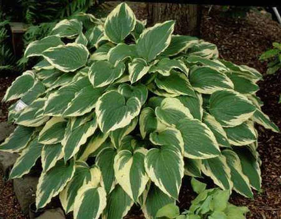 Высота куста 60 см в высоту и до 60 см в ширину. листья сердцевидные, слегка морщинистые, светло-зеленые с неровной кремово-белой каймой, цветки сиреневые до 5-6 см, аромат практически отсутствует. Цветет в июле - августе. Почвы предпочитает влажные, слабокислые. Может расти как на солнце, так и в полутени. Зимостойкий сорт.