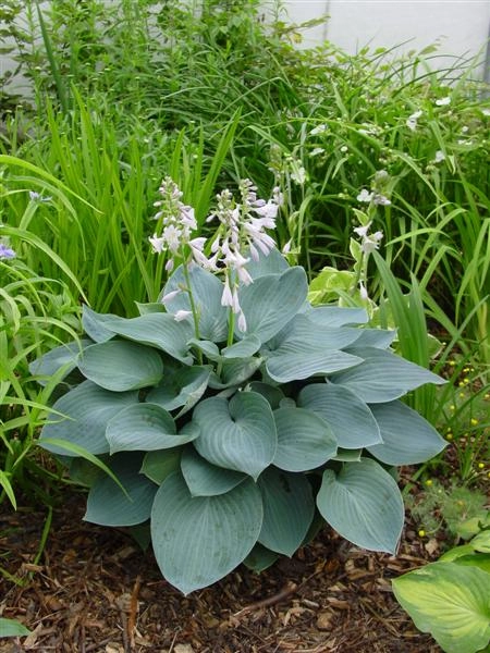 Широкие сердцевидные листья насыщенного синего цвета с мелкими бороздками, ровным краем и легким налетом (похожим на иней) формируют довольно большой объемный куст. Этот сорт, особенно стоек к слизням и улиткам. Цветки лилово-белые, лавандовые, без запаха. Высота 40 см, ширина 75 см. размеры листа 25x15 см.