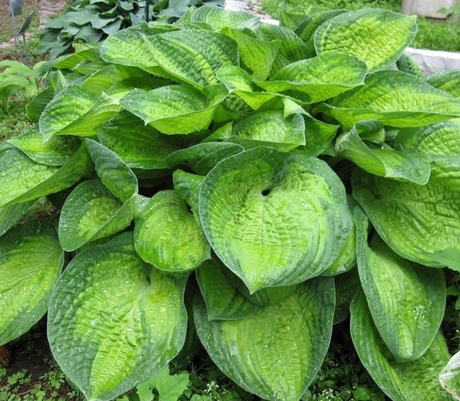 Высота 50-60 см. Листья прикорневые, на черешках, сравнительно крупные, кремовые с зеленой каймой, широкояйцевидные. Цветоносы почти не облиственные, крупные. Цветки воронковидные или воронковидно-колокольчатые, сиреневые, фиолетовые, реже белые, собраны в кистевидное соцветие.