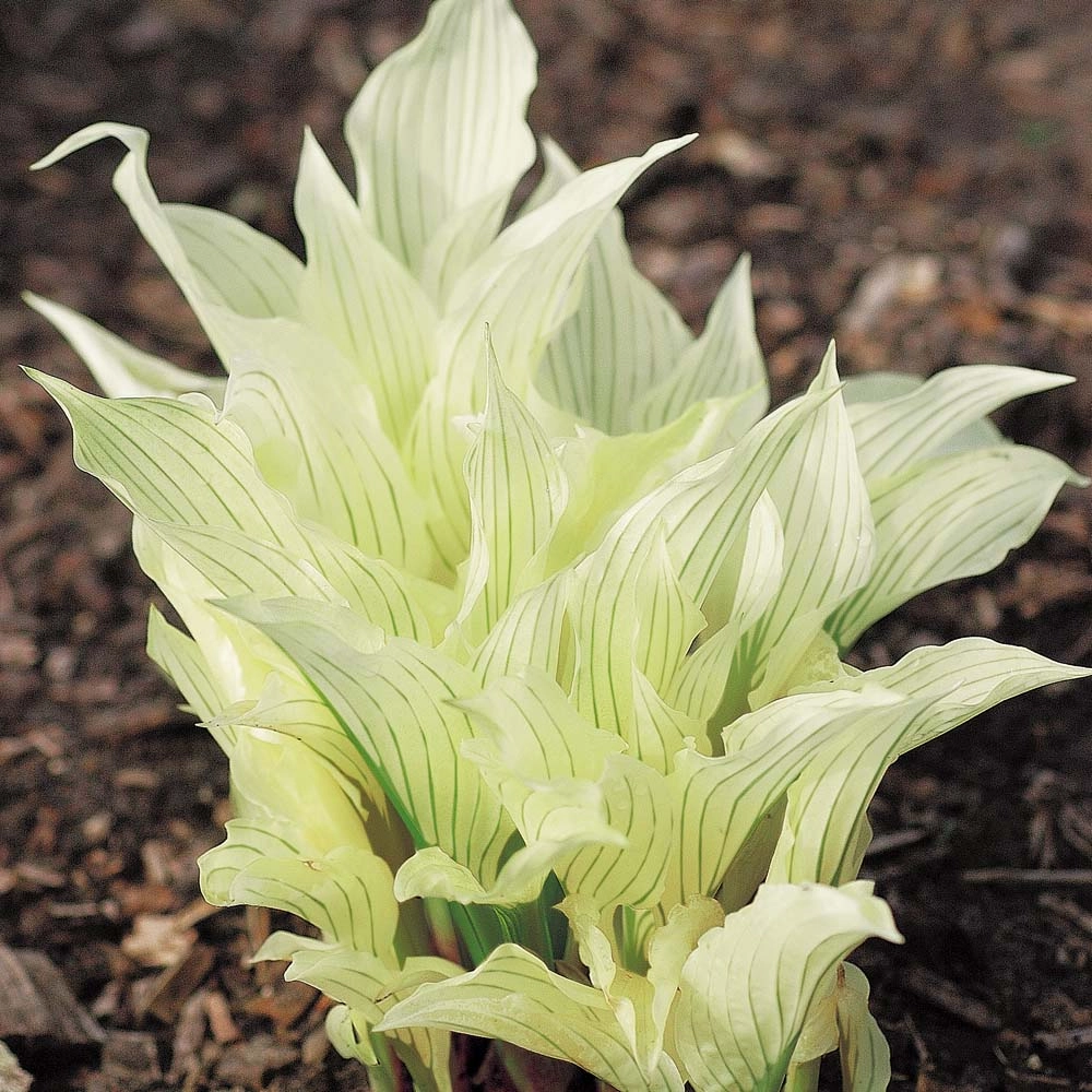 Высота растения не более 60 см. Молодые листья сливочно- белые, размер 15 см. По мере роста на листьях хосты появляются яркие зеленые полосы, которые со временем заполняют почти весь лист. Цветки лавандовые, почти белые, цветение с июля по сентябрь. Хоста неприхотлива, холодостойка, теневынослива, исключительно декоративна, растения практически не подвержены заболеваниям, не требовательны к почвам. Не любит застоя воды.