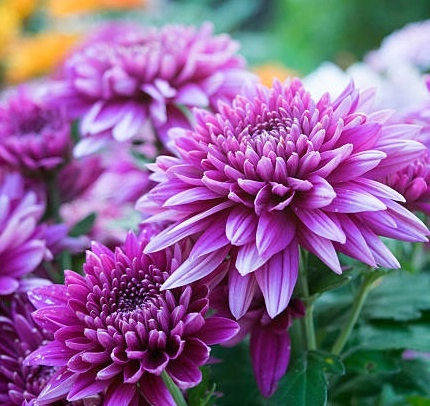 Высота до 100 см. Хризантемы отличаются быстрым ростом, засухоустойчивы и светолюбивы. Цветут с августа и до морозов. Соцветия-корзинки имеют разнообразную окраску. Лучшее украшение осеннего сада.