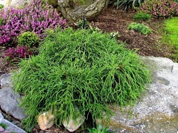 Хвойное дерево, карликовое. Высота, 0,5 м, диаметр, 1,2 м. Медленнорастущий. Годовой прирост, 10 см в высоту и 5 см в диаметре. Форма кроны, полушаровидная. Хвоя чешуевидная, прижатая, мягкая, немного колючая, зеленая. Место посадки: солнце-полутень. Зона морозостойкости (USDA) 5 (от -29° до -23°). Подходит для одиночных посадок и в хвойных композициях, а также для контейнерного выращивания.