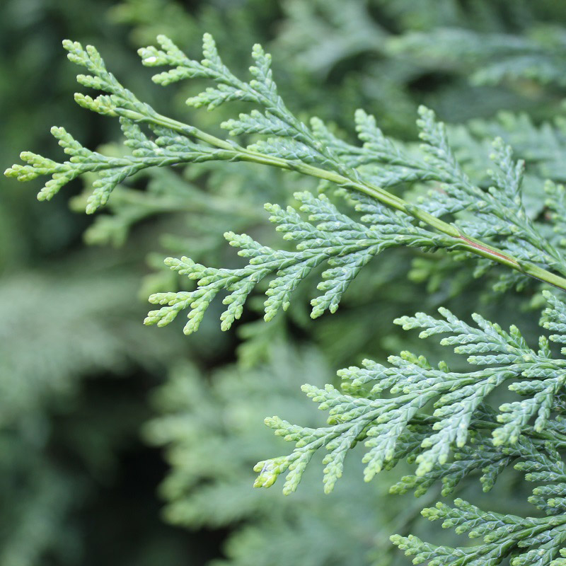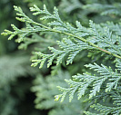 Хвоя чешуйчатая, зеленая, густая, плотно прилегает к ветвям. Молодая поросль мраморно-белая или белая, к зиме зеленеет.