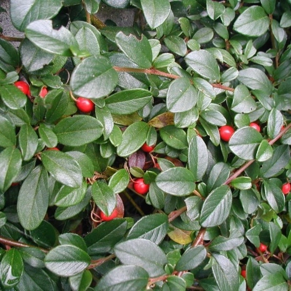 Достигает всего 10 - 15 см в высоту. Стелящийся густой кустарник. Листья кожистые плотные. Цветет в мае, очень обильно, цветки белые. Ягоды темно-красные. Обратите внимание, что данное растение плохо переносит низкие температуры ! Растение неприхотливо к почвам, но плохо растет на сухих. Идеальное место для посадки – солнечный или полутеневой участок. Хорошо кизильник будет расти на камнях, поэтому его можно высадить на альпийской горке или каменистом склоне.
