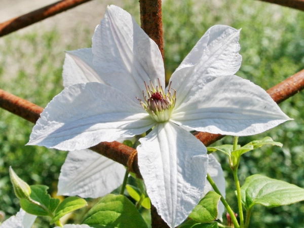 Диаметр цветка 6–9 см. Количество чашелистиков 4–6, цвет белый, тычиночная нить зелёная с пурпурным пыльником. Цветение длительное: в июне на сохранённых побегах, в июле–сентябре – на побегах текущего года.