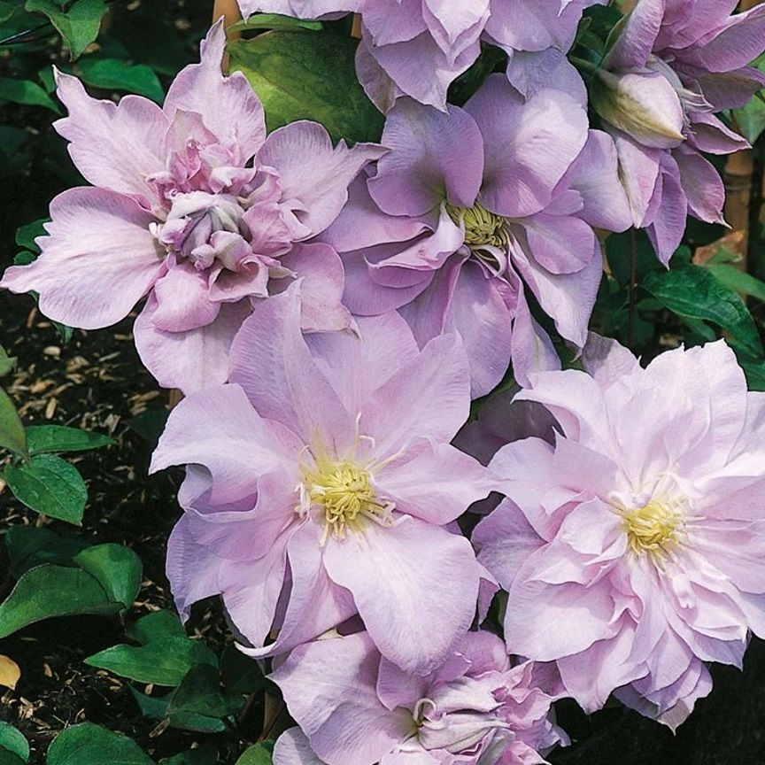 Цветение: май-сентябрь. Крупные цветки диаметром 12-15 см и необычную светло-лиловую окраску. Повторное цветение.