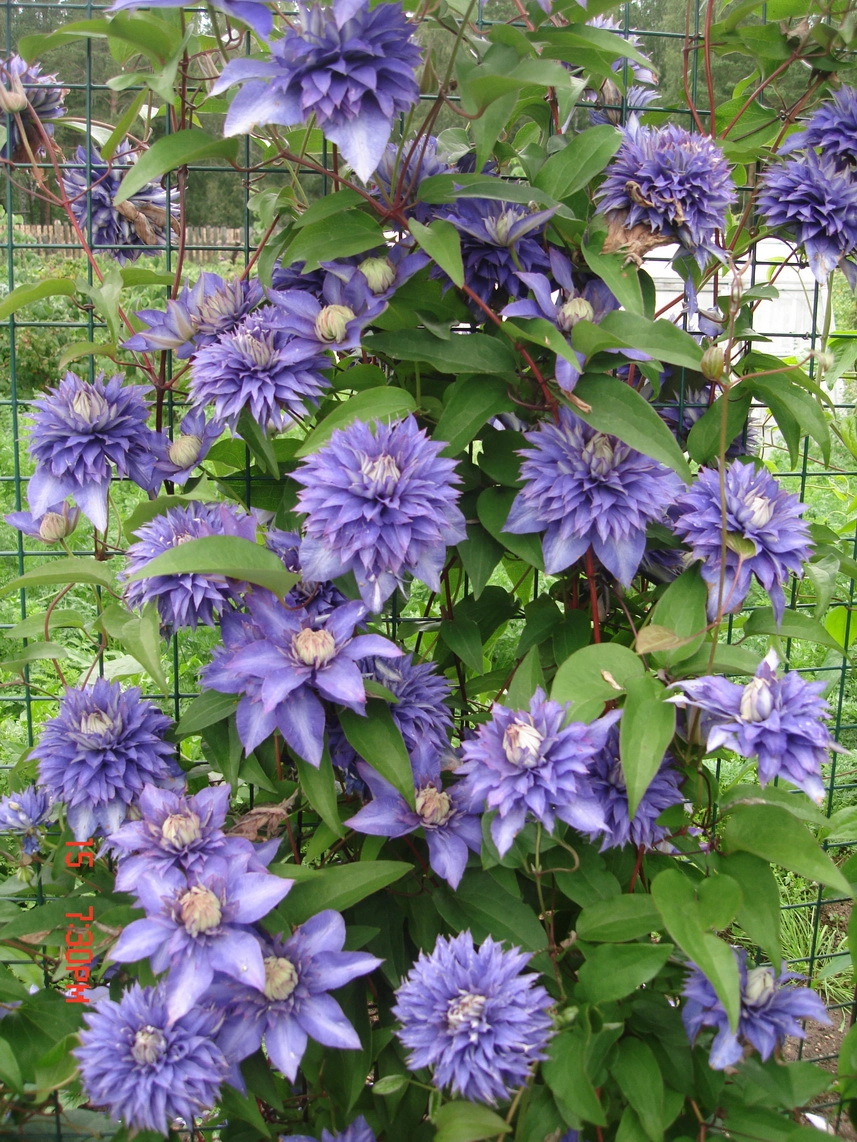 | Цветок | Лиану покрывают плотная матовая, тёмно-зелёная листва и густомахровые цветки (15см). Чашелистики у основания крупные, удлиненные, ближе к центру сильно заостряются |