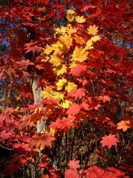 Листья тёмно-зелёные, ярко-зелёные, голые или с рассеянным опушением, снизу светло-зелёные, опушённые по жилкам. Осенью листья жёлтые, оранжевые, светло-розовые, красные, фиолетовые.