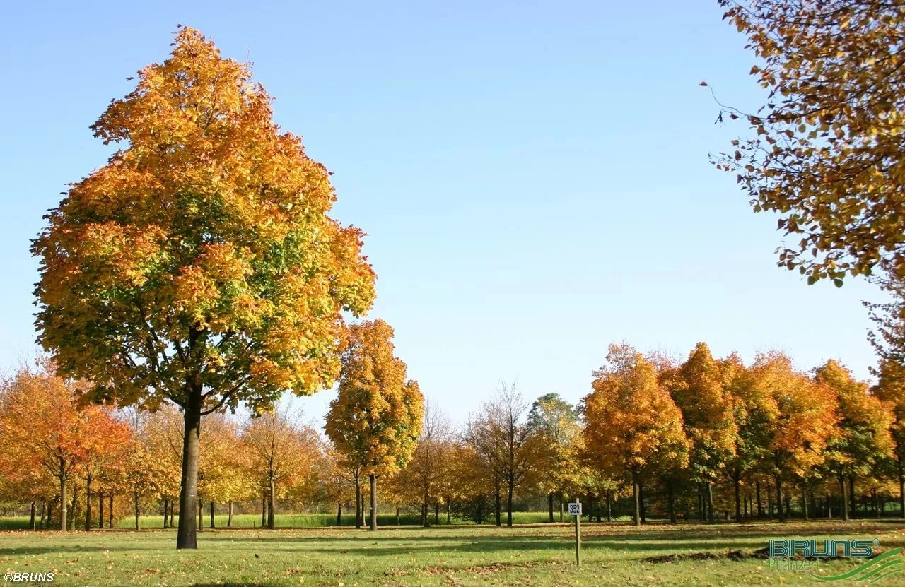 Высота 8-12 м, диаметр кроны 3-5 м. Крона колоновидная, компактная. Крона овальная. Ветви направлены вверх. Растет умеренно быстро. Листья крупные, 5-и лопастные, при распускании красные, позднее зеленые, блестящие. Осенью - желтые, оранжево-желтые. Почва: дереннированные, влажные почвы. Место посадки: солнце, полутень. Зона морозостойкости (зимостойкость) 4 (до -35С).