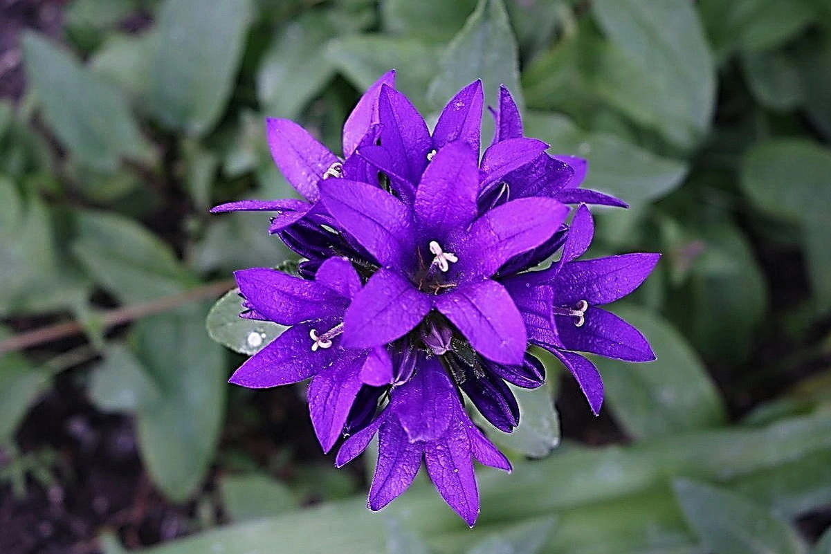 Высота 30-60 см. Листья яйцевидно-продолговатые или яйцевидно-ланцетные, зубчатые. Цветки темно-фиолетовые, голубые, белые до 2 см в диаметре, в верхушечных и пазушных головчатых соцветиях до 20 шт. Цветет в июне-июле 30-35 дней.